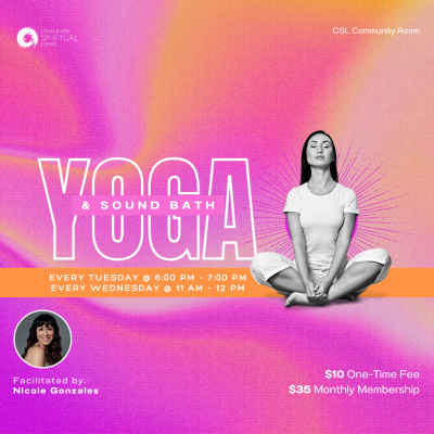 Every Wednesday @ 11 AM - 12 PM Every Tuesday @ 6:00 PM - 7:00 PM 09 Dec, 2025 6:00pm - 7:00pm Every Wednesday @ 11 AM - 12 PM Every Tuesday @ 6:00 PM - 7:00 PM CSL Community Room $10 One-Time Fee $35 Monthly Membership Facilitated by: Nicole Gonzales Unwind and reconnect in […]