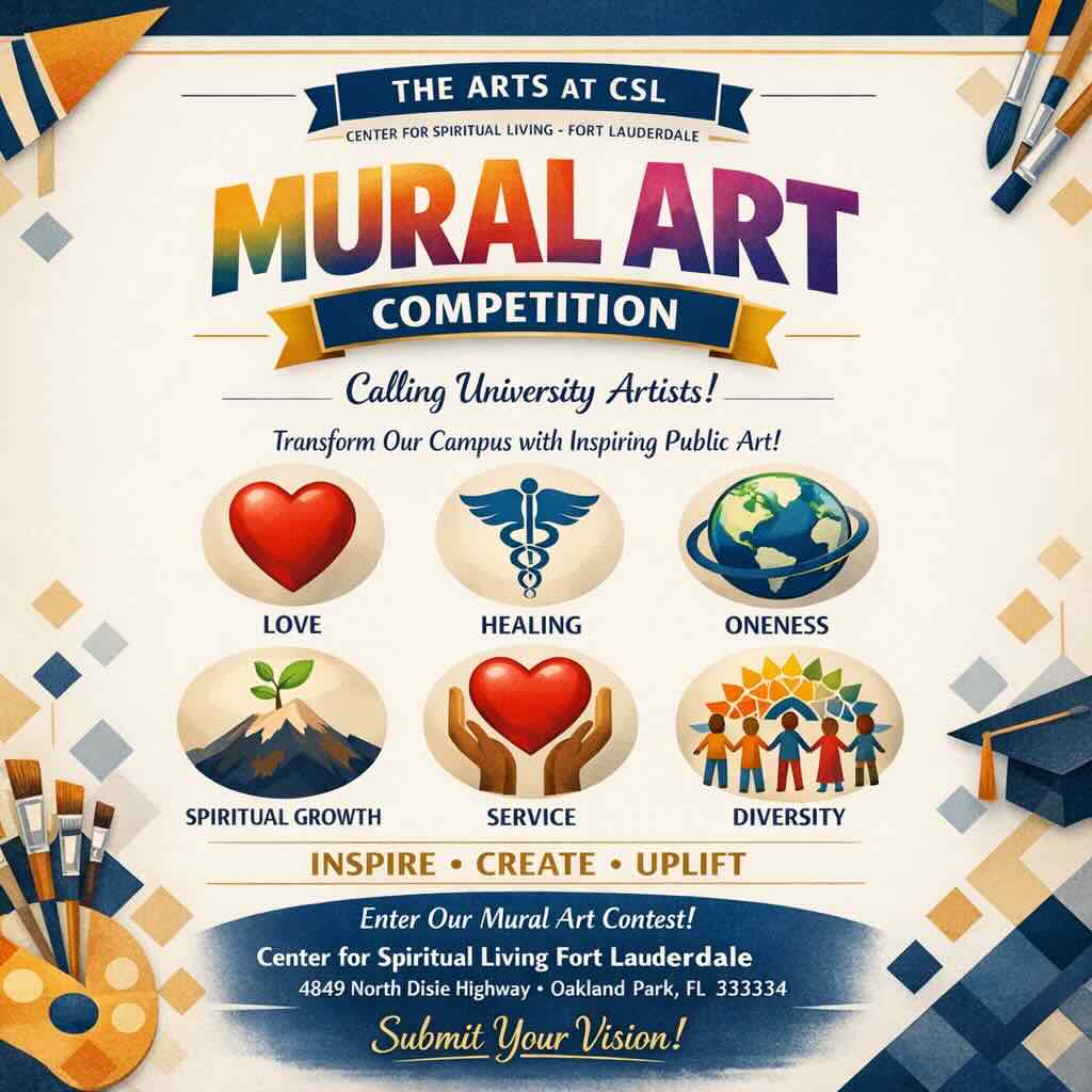 The Arts at CSL program at the Center for Spiritual Living – Fort Lauderdale is pleased to announce its inaugural Mural Art Competition, inviting university artists to help transform our campus […]